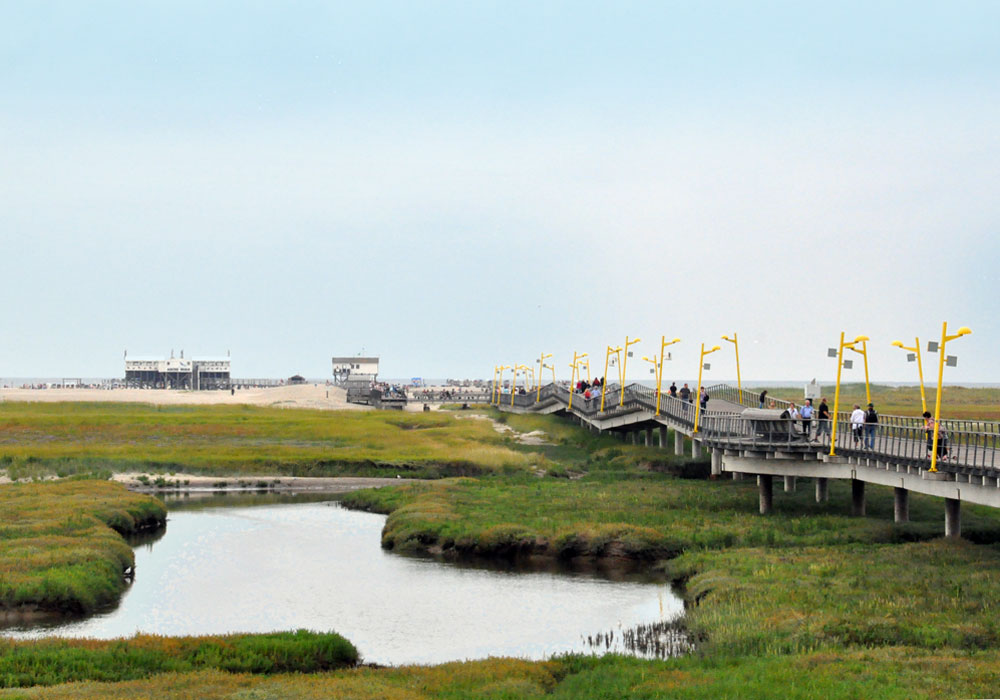 mit seinem schönen riesigen Sandstrand. Das ganze Jahr über finden hier große Spiel- und Sportveranstaltungen für Groß und Klein statt. Bei jedem Wetter bietet die Dünen-Therme mit integrierter Wellness-Oase Spaß und Entspannung.