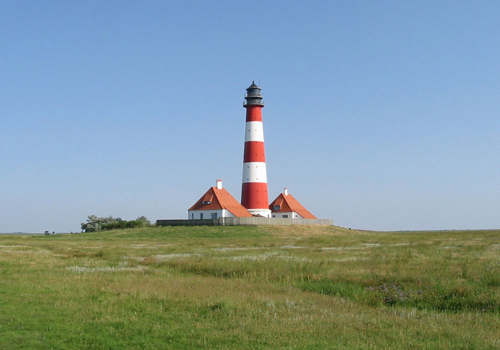 hier steht der bekannte Westerhever Leuchtturm, von welchem aus man den einmaligen Rundumblick über das Wattenmeer und die Halligen hat. Am ruhigen Sandstrand in Westerhever kann man sich beim Baden und Spatzierengehen wunderbar erholen.